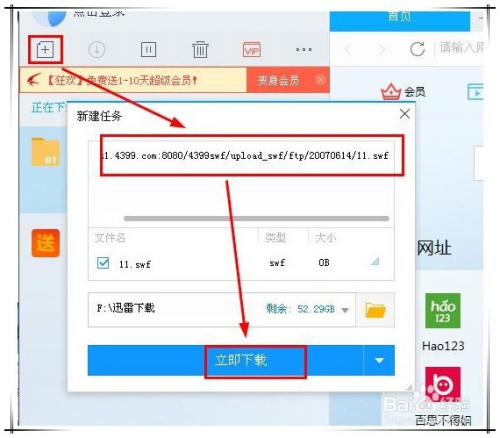 打开下载东西,如迅雷,再将组合后的下载地址复制了,这时迅雷会弹出主动新建使命窗口,点击当即下载就可以将该游戏下载下来了。若是下载东西没有主动弹出新建使命窗口,可点击“+”来手动新建下载使命。
