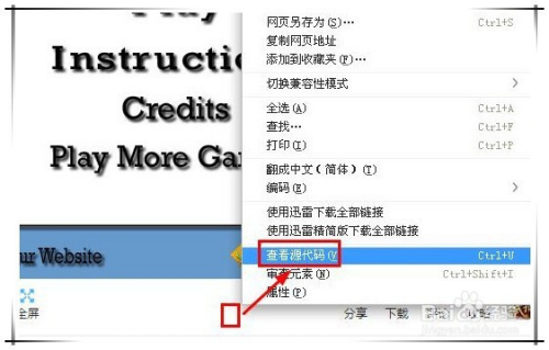 在游戏页面右键鼠标,弹出菜单中选择“查看源代码”。
