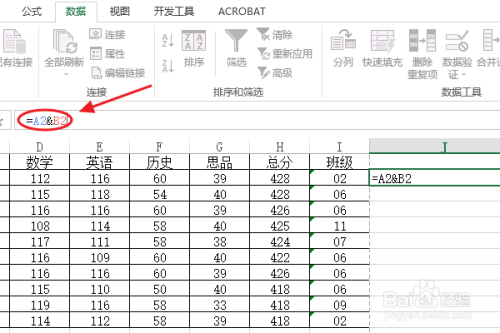 ①我们在表格的后面一列,好比下图的J2列输入公式“=A2&B2”(我们只以查找前两列为例),然后J2单位格就会酿成下图二的格局