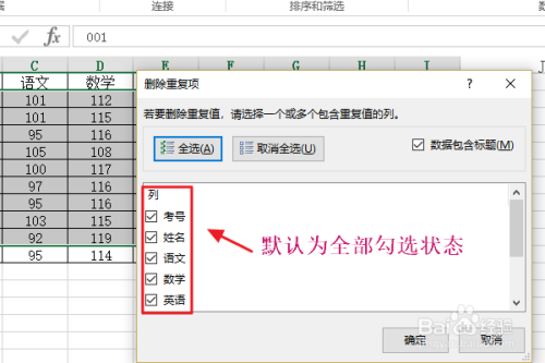 ②在弹出的删除反复项对话框,系统默认的勾选全数列,若是我们只需查找某一列的反复项,那么其他的勾选可以去失落,如许系统会主动将反复的那一行或者列整体删除,如图二...
