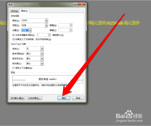 点击字体页面确定后,在返回word页面,发现适才重叠的字体,已经批改了。