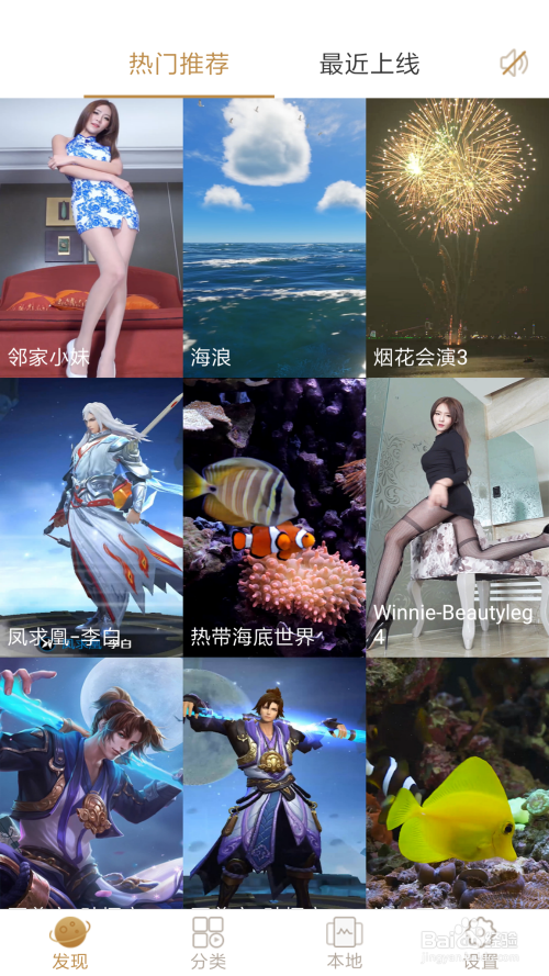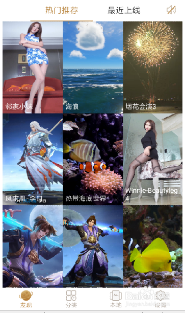 打开“趣看视频桌面”这个软件,在“发现”里面有良多现当作的联网视频,当然你也可以经由过程这里的联网视频去找你想要设置壁纸的视频,不敷这里我们我们已经下载好了视频文件,所以我们切换到“当地”界面,找到我们下载好的视频文件。