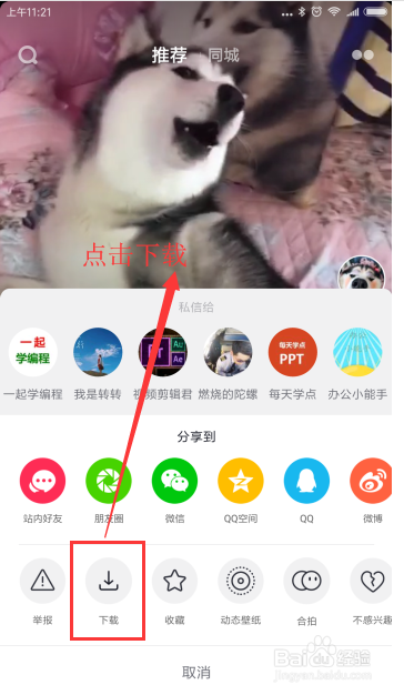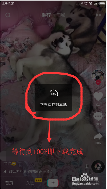 单击分享按钮,找到下载视频的号令,单击下载视频,视频就会进行下载,当下载到100%的时辰,就会提醒你想要得视频已经下载完当作保留在手机中了。