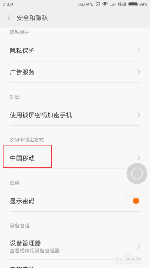 接下来,我们可以看到“SIM卡锁定体例”设置选项,因为我们利用了双卡体例,可以选择此中的一种SIM卡设置即可。