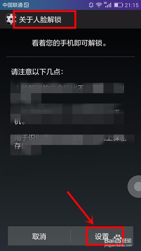 紧接着,我们即可看到关于人脸解锁设置页面,从中可以看到对于人脸解锁的相关介绍,我们点击页面下方的设置选项;