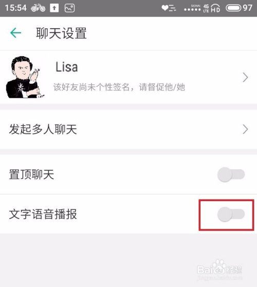 第五步:有些人因为小我原因不便利措辞只能打字那么对于此外用户拿手机看聊天记实也很麻烦,那么该怎么办?!这个方式是可以解决的,进入聊天界面,点击右上角聊天设置,有一个文字语音播报的开关,打开会会呈现选择界面,让你选择播报的声音,有男有女有方言。