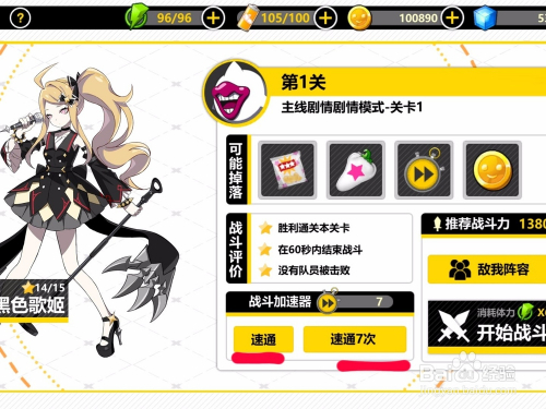 可以在关卡的右下角看到快速经由过程图标,可以点击速通一次或者速通7次,每次速通城市耗损一个战斗加快器。