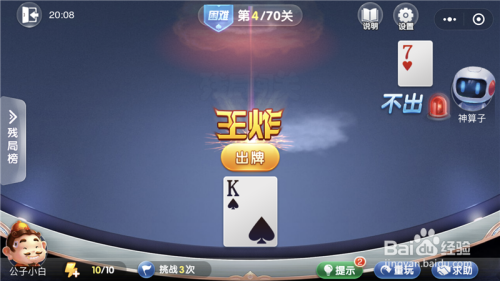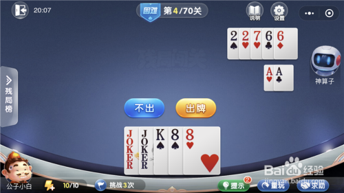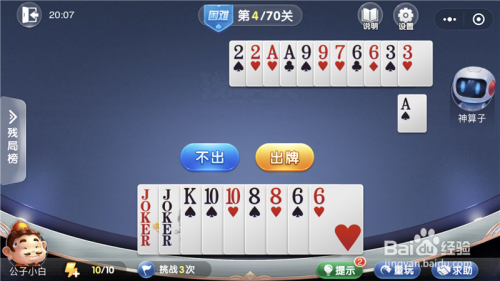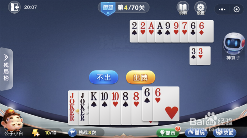 微信欢喜斗地主残局闯关7月坚苦模式第4关攻略,第4关最本家儿要的是开局之后的出牌选择,大师选择好了就会很轻松的过关,小白就告诉大师微信欢喜斗地主残局闯关7月坚苦模式第4关攻略