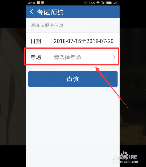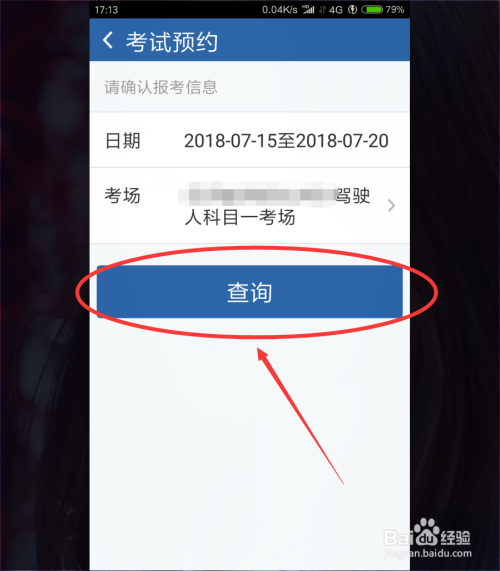我们选择好科目一的科场之后,我们找到“查询 ”按钮,点击打开进入测验日期预约页面 。