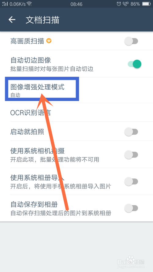 文档扫面中,点击图像加强处置模式(此时是主动模式),如图所示