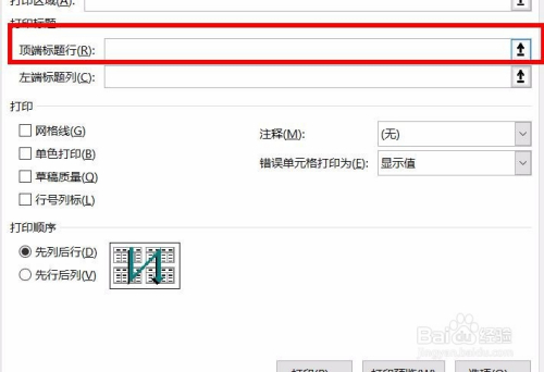 在弹出的对话框中点击工作表,然后点击顶端题目行,会发现这个栏目变为不成选状况。