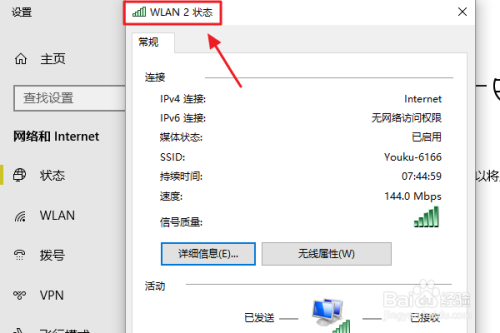 随后仍是用右键点击,此次我们选择“状况”,接着即可弹出WLAN状况对话框,如图二...