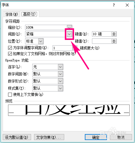 点击高级后,在其下方的【间距】后方点击下拉箭头。
