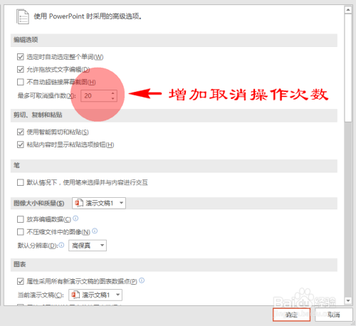 - 设置好后,注重点击选项面板下确定按钮,以应用可打消操作次数的点窜。