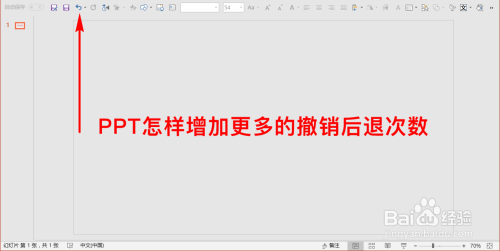 既然PPT在设计与建造中,不免会犯错,作为悔怨药的撤销键此时就显得很是有效了,但它的利用次数却有限,有时很难知足我们的现实需求,所以我们就有需要在打开PPT后,设置更多的可撤销次数。