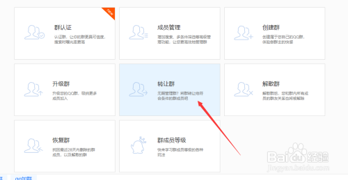 接下来会在浏览器中打开一个网页--QQ群官网--群办理,将页面往下翻,看到此中有个让渡群模块,点击它。