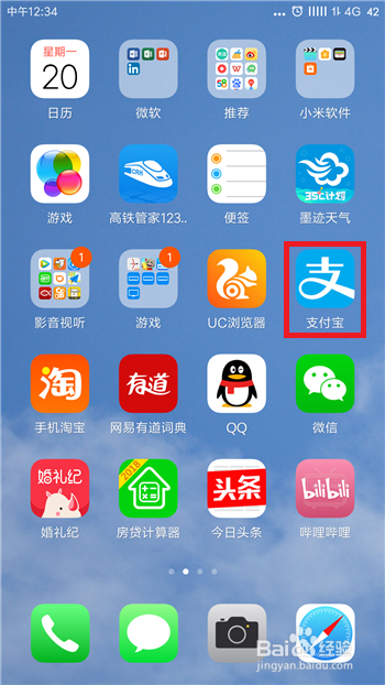 打开手机,在手机的桌面上找到并打开付出宝APP,如图所示。