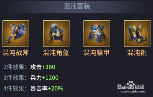 初始状况是拥有套装中的两件就可以增添英雄360点进犯,3件则可以增添1200点军力,4件就可以晋升20%的暴击率,本家儿公可经由过程清缴8-15级的外族或者在铸铁商铺兑换获得。