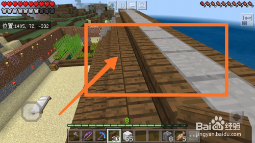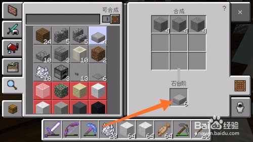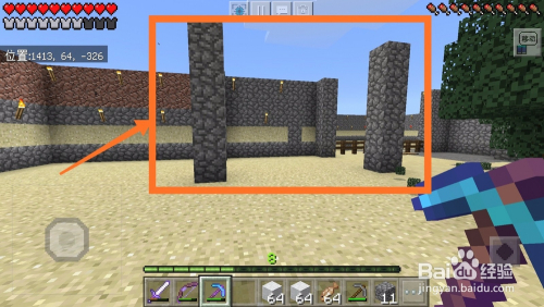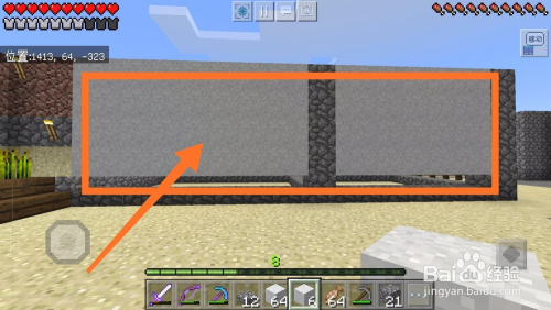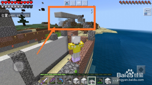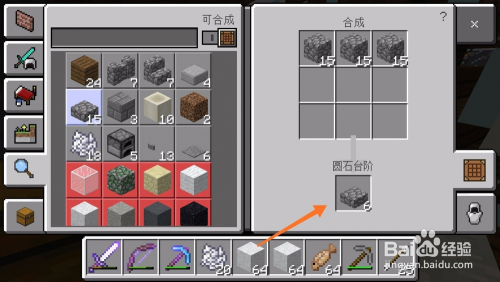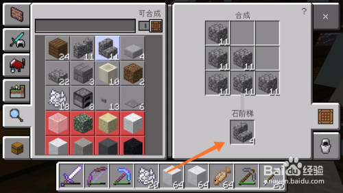 然后我们利用圆石合当作石台阶,石阶梯。石阶梯和石台阶都有很年夜的用处,今后必定会用到,如下图所示。