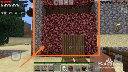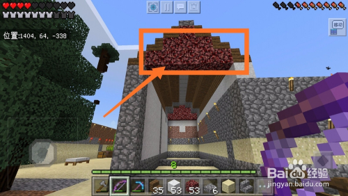 房顶搭建好之后,我们利用地狱岩填充空余部门。红色的地狱岩是不是很有富贵人家的派头。