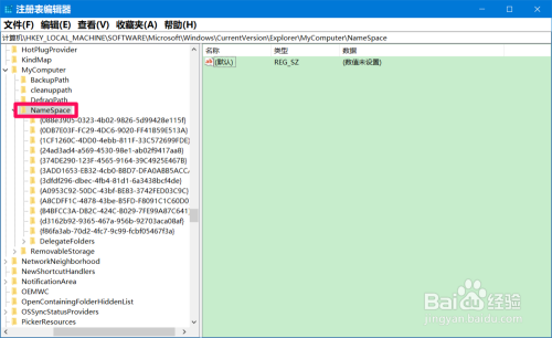 路径复制粘贴好今后,按下键盘上的回车键,定位到 NameSpace 键项;