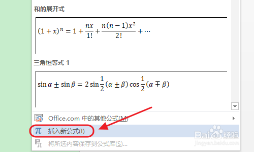 ②然后“插入新的公式”,在新的公式中我们找到分数图标,不外系统给的分数种类也良多,我们常用的往往是第二种;