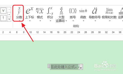 ③然后我们会看到分数线的两侧别离是两个小方框,我们点击小方框即可输入数字;