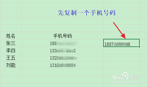 还有一种对齐体例就是手机号码分段对齐,因为手机号码比力长,为了不被看错,我们一般会将其分段显示,这个时辰就要用到排列对齐了,具体方式如下:我们首先复制此中一组手机号;