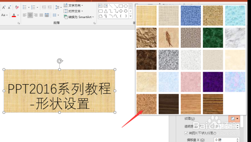 渐变色除了选择预设的结果外,还可以设置自界说的渐变色。而纹理填充预设了十五种纹理。