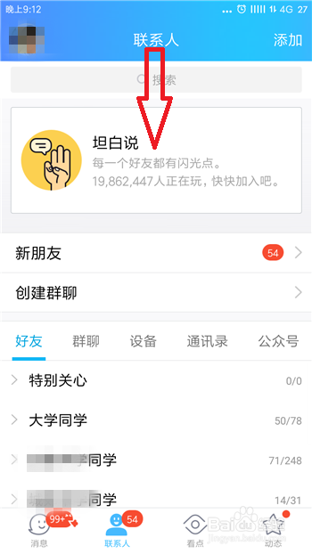 进入到联系人的界面后,在顶部有【QQ率直说】,点击进入到QQ率直说。