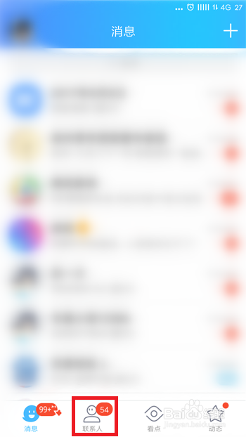 打开手机中的QQ并登岸账号,在QQ动静的首页中点击底部的【联系人】。