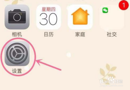 1.首先打开手机,进入IOS系统的本家儿页面,并找到【设置】这个按钮,如下图所示。