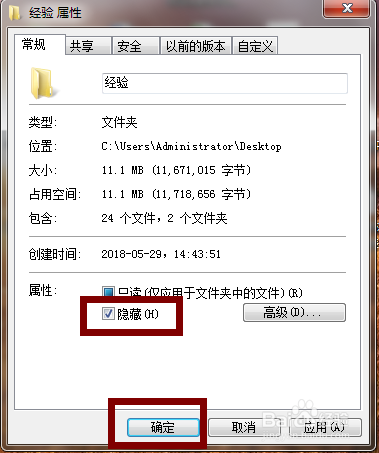 在属性设置中勾选【埋没】,再点击下方的【确定】。
