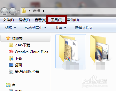 若是发现文件夹只是颜色变淡并没有彻底消逝不见怎么办呢?不要焦急,随便打开另一个文件夹,点击该文件夹菜单栏上的【东西】。
