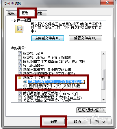 在文件夹选项本家儿页选择【查看】—【不显示埋没的文件、文件夹或驱动器】—【确定】,如图所示。设置完当作后桌面上设置了埋没的文件夹就会彻底消逝啦!