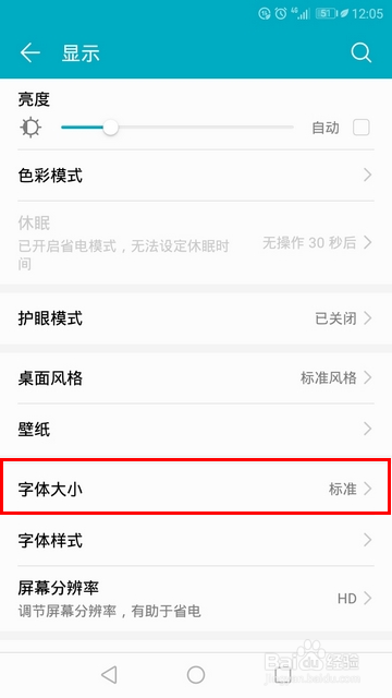 打开显示今后,点击进入“字体大小”。