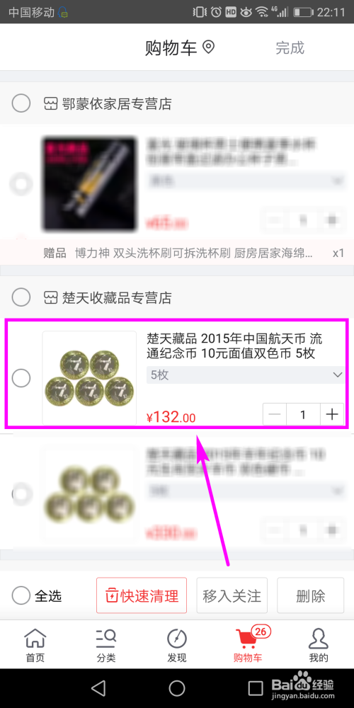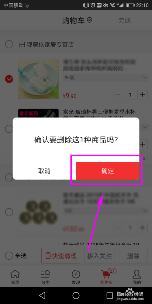第二种方式是,在购物车页面长按要删除的商品。