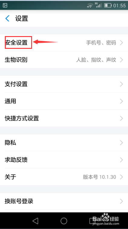在设置中再点一下平安设置;