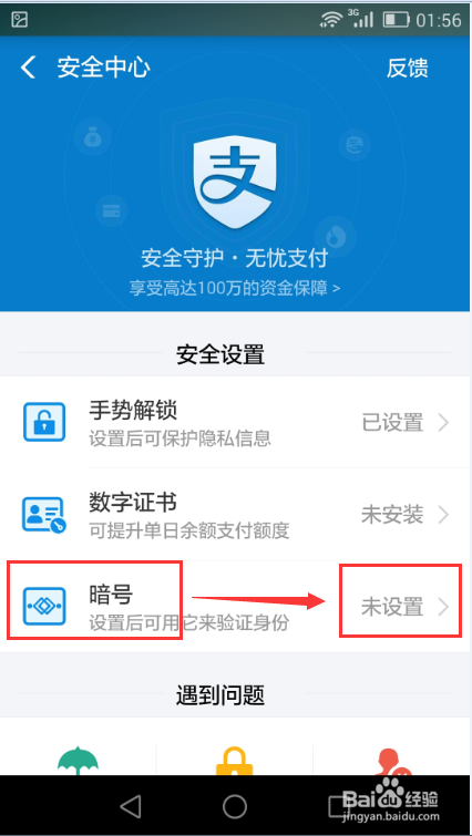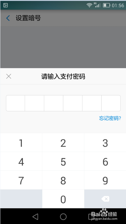 在设置记号时,先输入付出宝的付出密码;