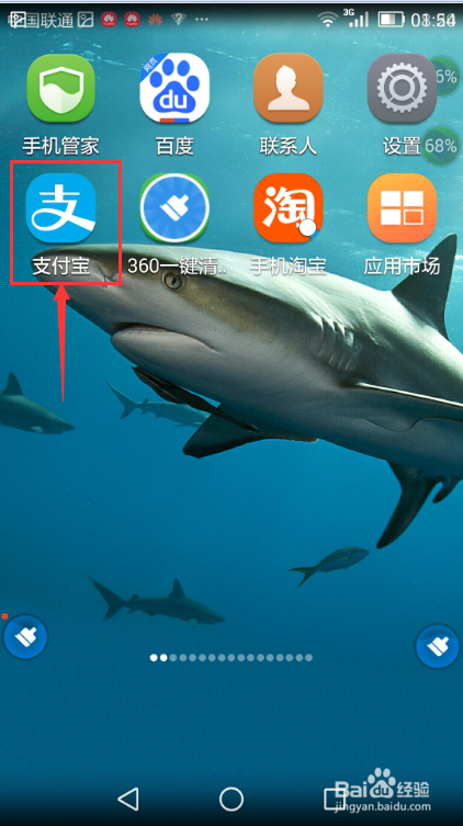 在手机上找到付出宝,点一下它;