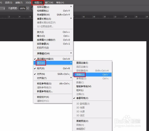 第四步:在菜单栏中选择“视图--显示--网格”选项。