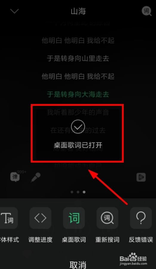 这时辰回到QQ音乐里面我们可以看到桌面歌词已经打开了。