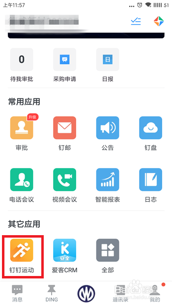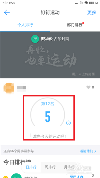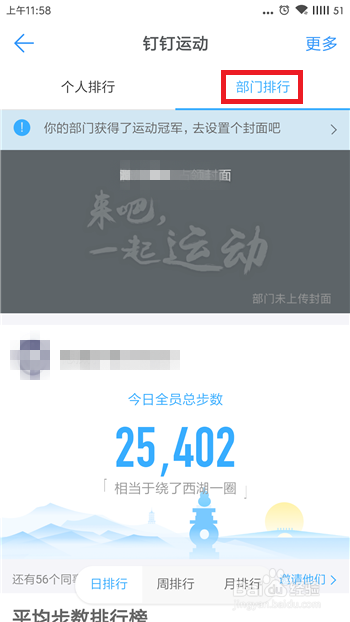 如许就开启了钉钉活动,在小我下方可以看到本身的活动步数本身排行榜。