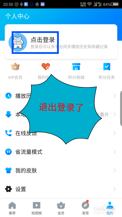 点击确认后,返回我的界面,能看到登录的账号已经退出了。