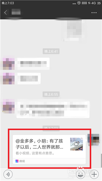如许就分享当作功了,点击进入和该老友的聊天界面,在聊天中可以看到适才发送的微视短视频。