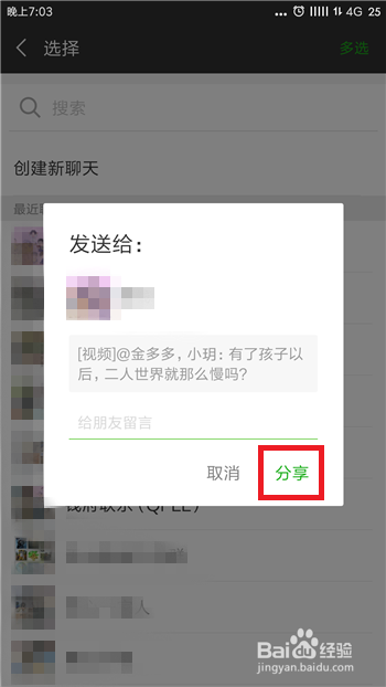 点击后系统会提醒是否发送视频给该老友,点击【分享】按钮。