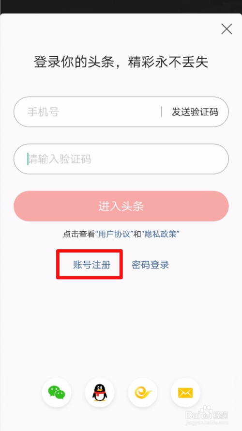 头条号除了可以利用第三方登录之外,还可以利用手机号注册的哦,具体的操作方式详见以下内容。