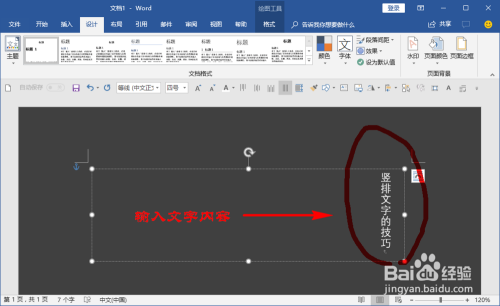 返回到word文档中,我们的文本框就被设置好了,然后我们就可以直接在竖排文本框内输入文字内容了,可以发现文字就主动是竖排的了。