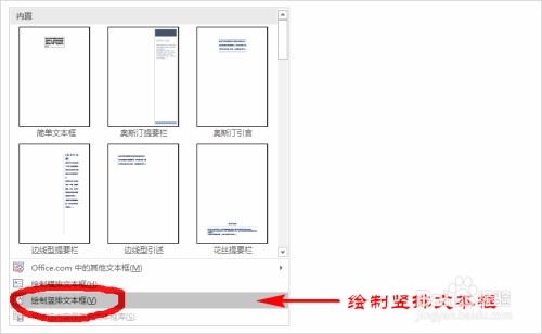 当然,插入竖排文本框,我们也可以直接在插入菜单下找到“文本框”,然后再找到竖排文本框,接着在文档中绘制出竖排文本框,设置其外形格局即可。