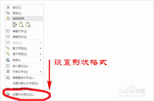 绘制出的竖排文本框默认是填充白色,然后还有一个黑色的线条边框,若是我们不想要填充和边框,或者想要设置为其他颜色的填充和边框颜色,我们可以选中文本框,点击右键选择“设置外形格局”。